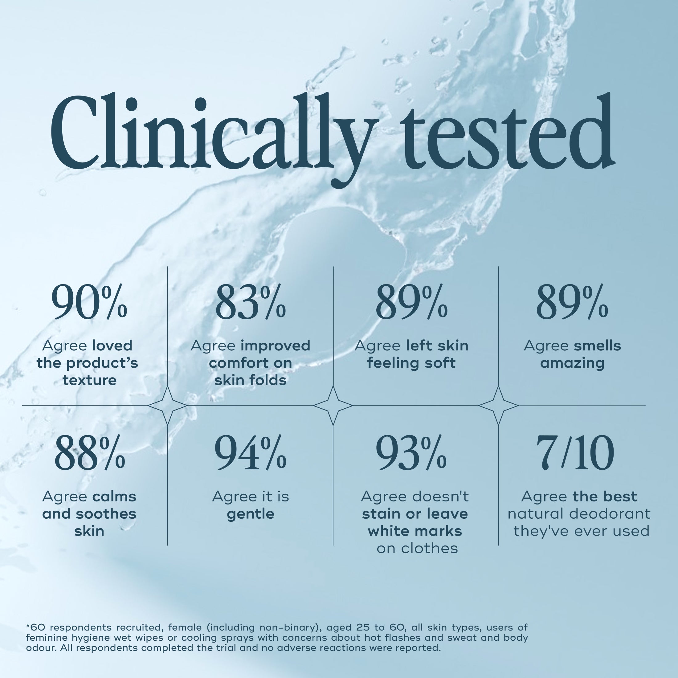- Use anywhere you sweat - underarms, thighs, under-boob, intimate areas.